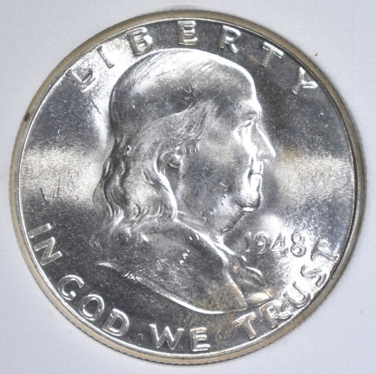 1948-D FRANKLIN HALF, OBCS SUPERB GEM BU FBL