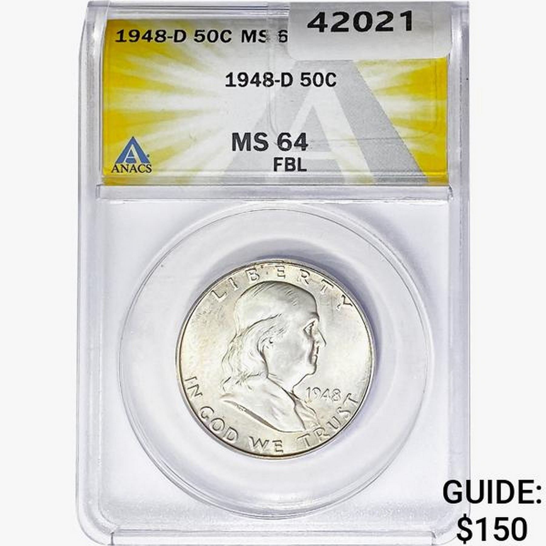 1948-D Franklin Half Dollar ANACS MS64 FBL