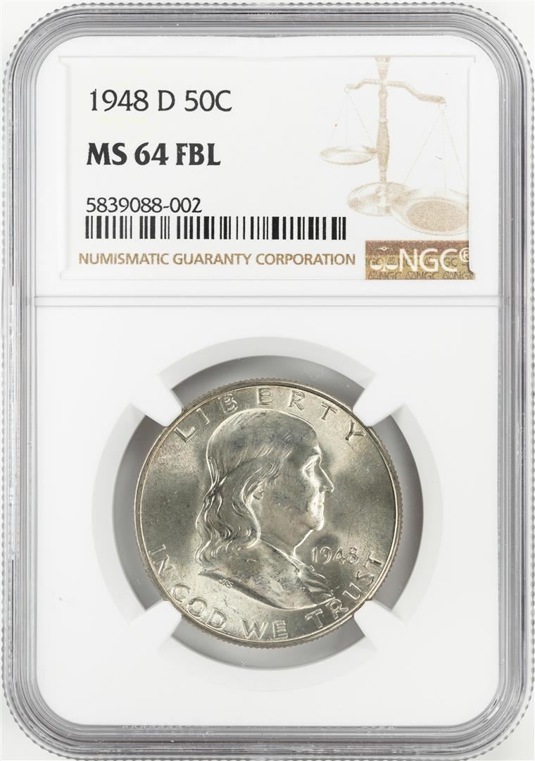 One 1948-D Franklin Half Dollar Coin NGC MS64FBL. NGC Certified.