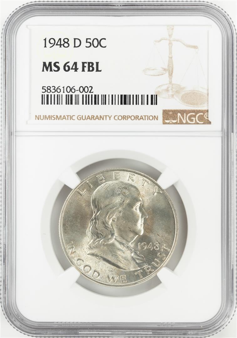 One 1948-D Franklin Half Dollar Coin NGC MS64FBL. NGC Certified.