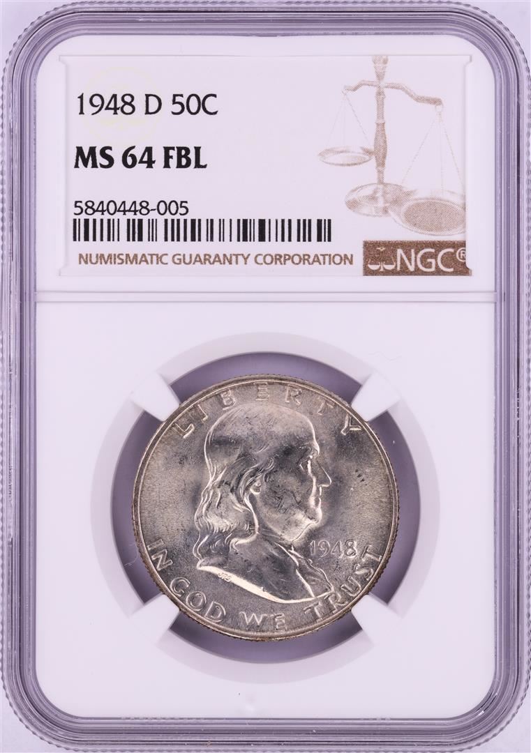 One 1948-D Franklin Half Dollar Coin NGC MS64FBL. NGC Certified.