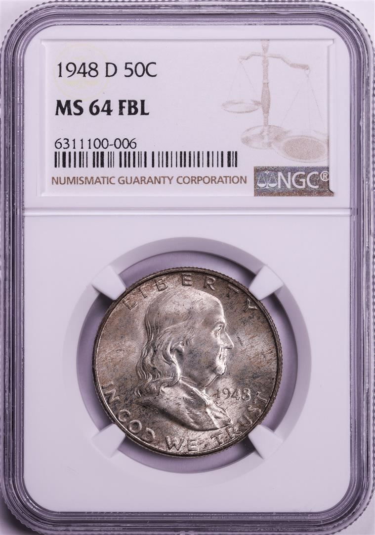 One 1948-D Franklin Half Dollar Coin NGC MS64FBL. NGC Certified.