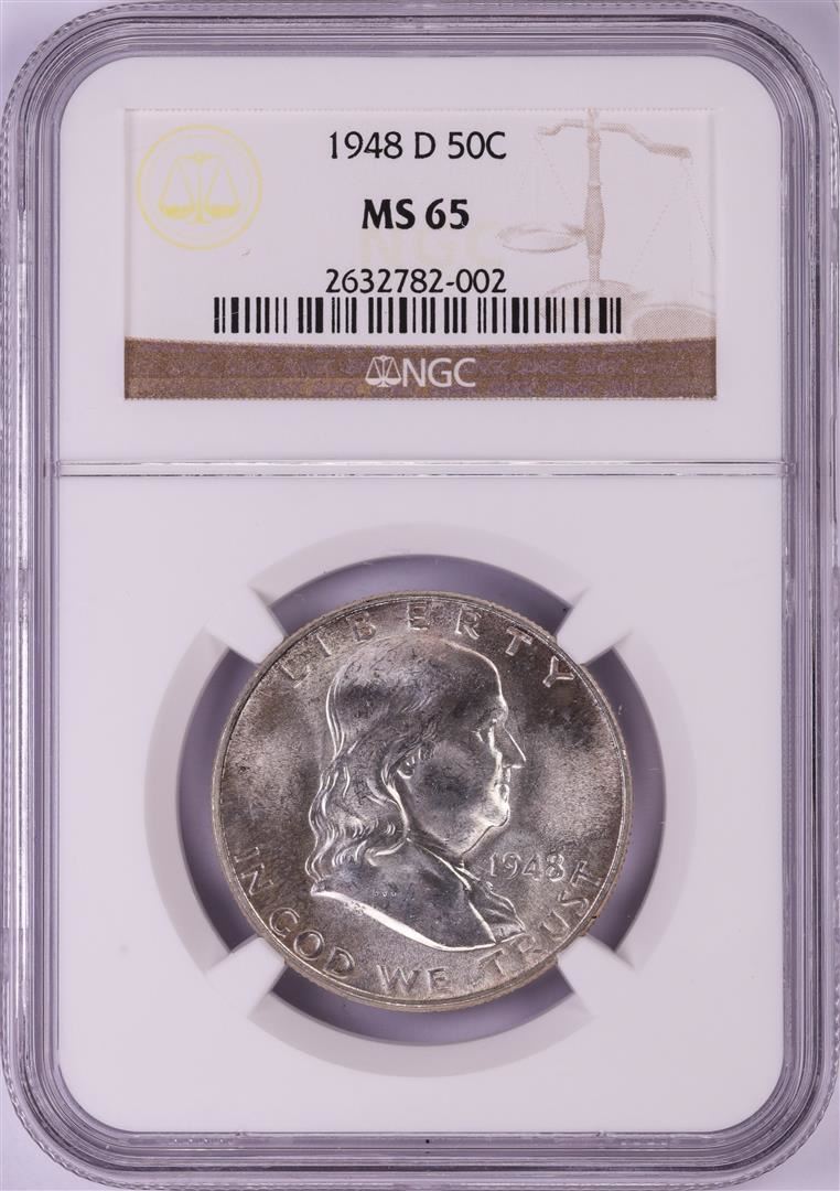 One 1948-D Franklin Half Dollar Coin NGC MS65. NGC Certified.