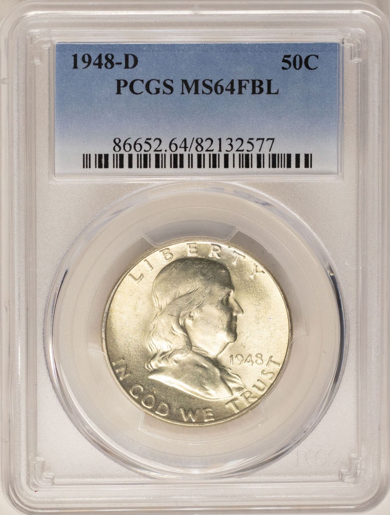 One 1948-D Franklin Half Dollar Coin PCGS MS64FBL.