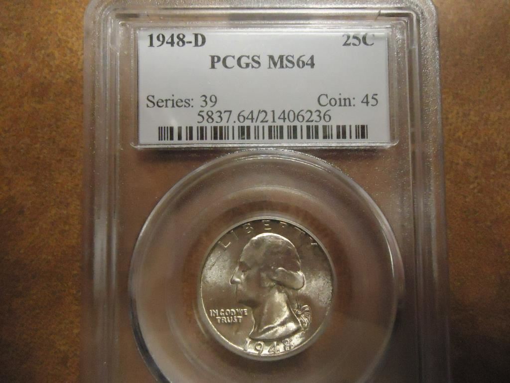 1948-D WASHINGTON SILVER QUARTER PCGS MS64