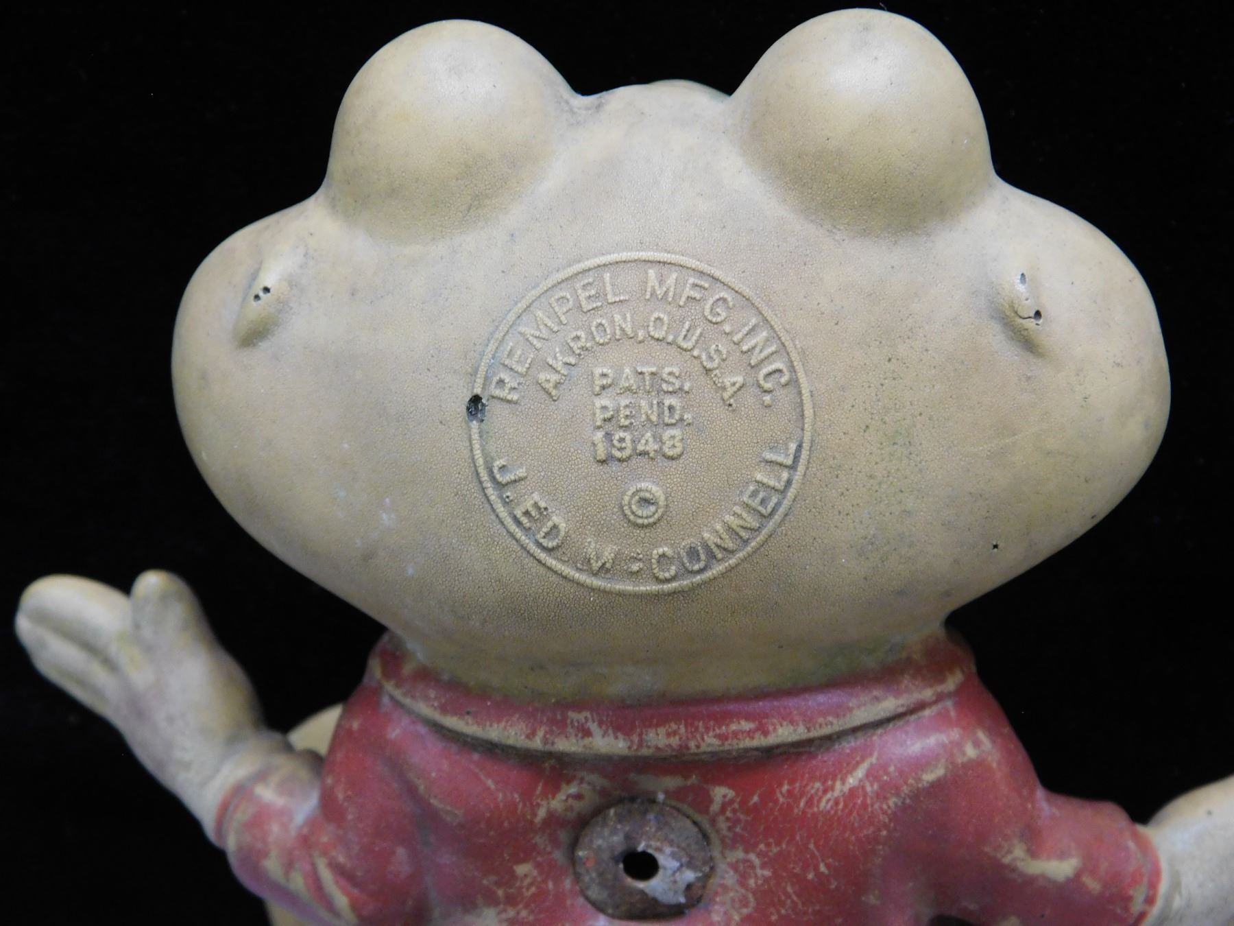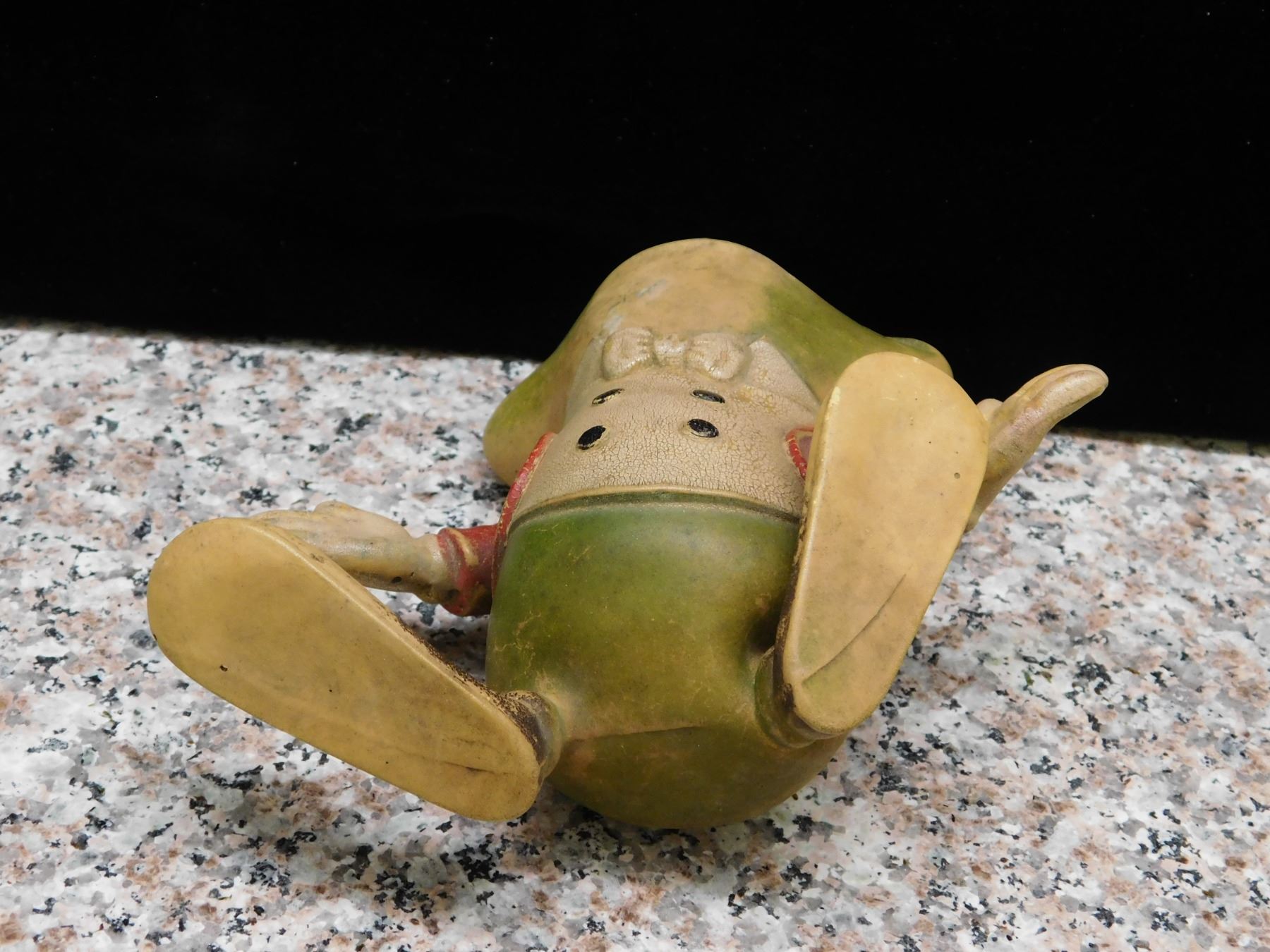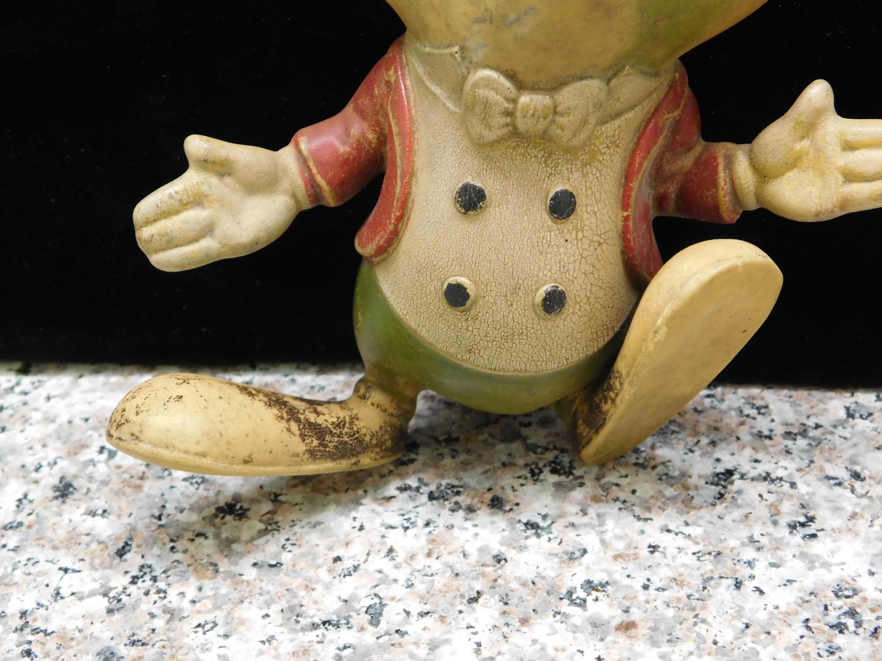 Squeaker works and no holes or tears. 75 years old, 5 ½ high, left foot out of balance.