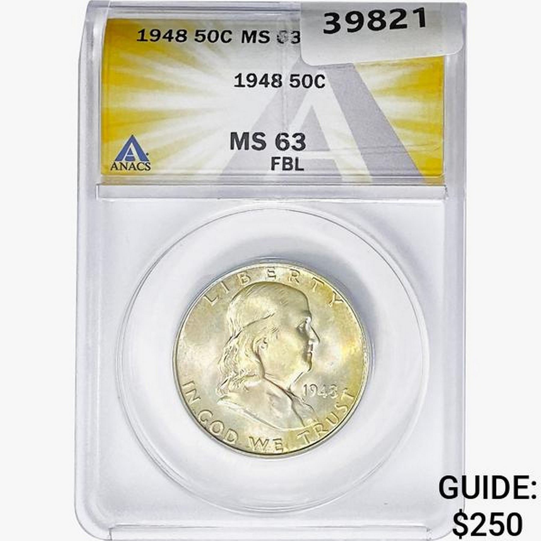1948 Franklin Half Dollar ANACS MS63 FBL