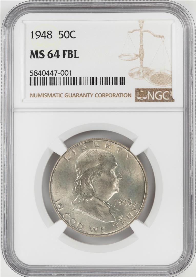 One 1948 Franklin Half Dollar Coin NGC MS64FBL. NGC Certified.