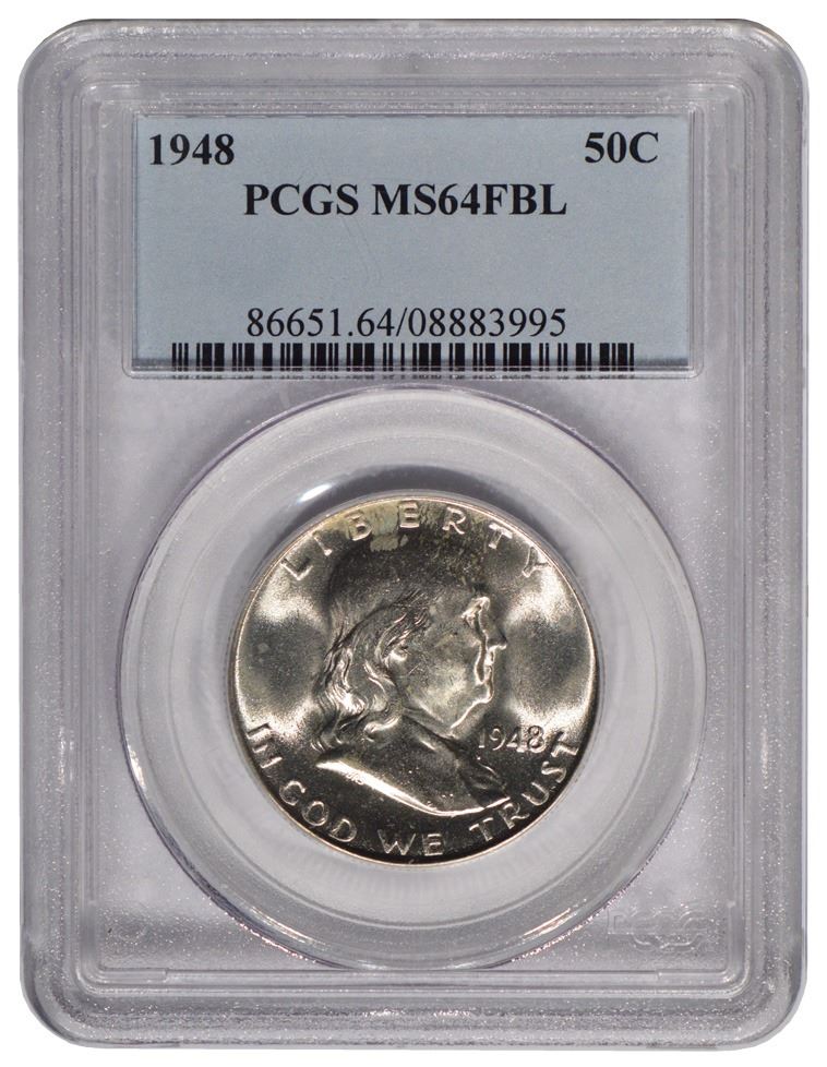 One 1948 Franklin Half Dollar Coin PCGS MS64FBL.
