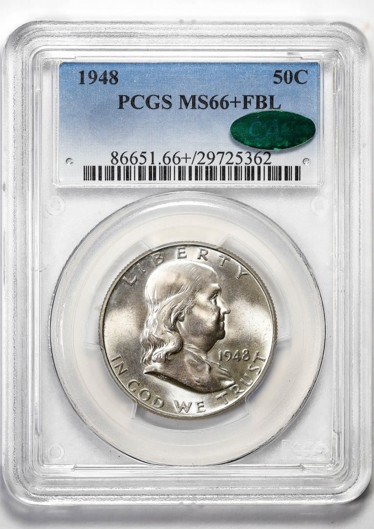 One 1948 Franklin Half Dollar Coin PCGS MS66+FBL CAC. PCGS Graded.