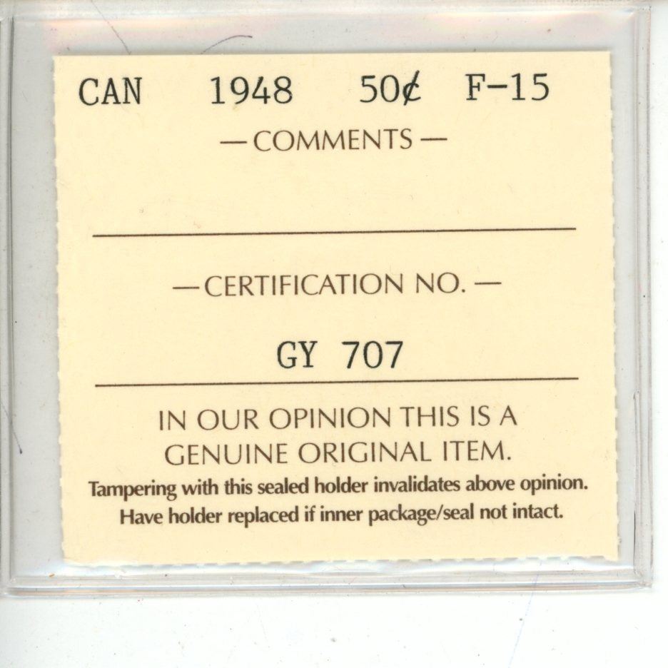 1948 ICCS Graded - Canadian Fifty Cent - F15