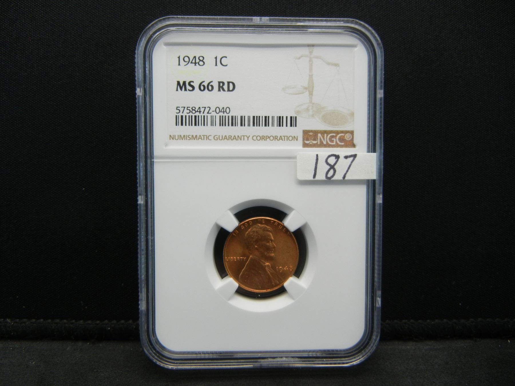 1948 Lincoln Cent NGC MS66 NGC Price Guide $135