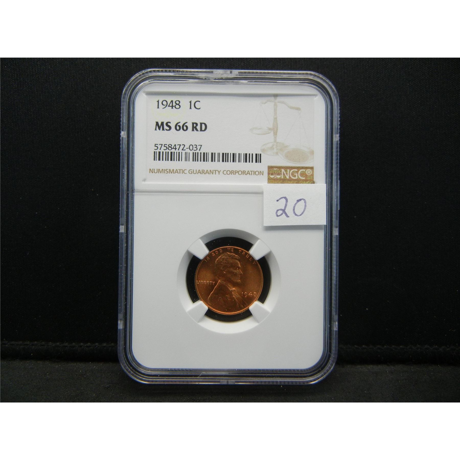 1948 Lincoln Cent NGC MS66 Red Scarce NGC Price Guide $135