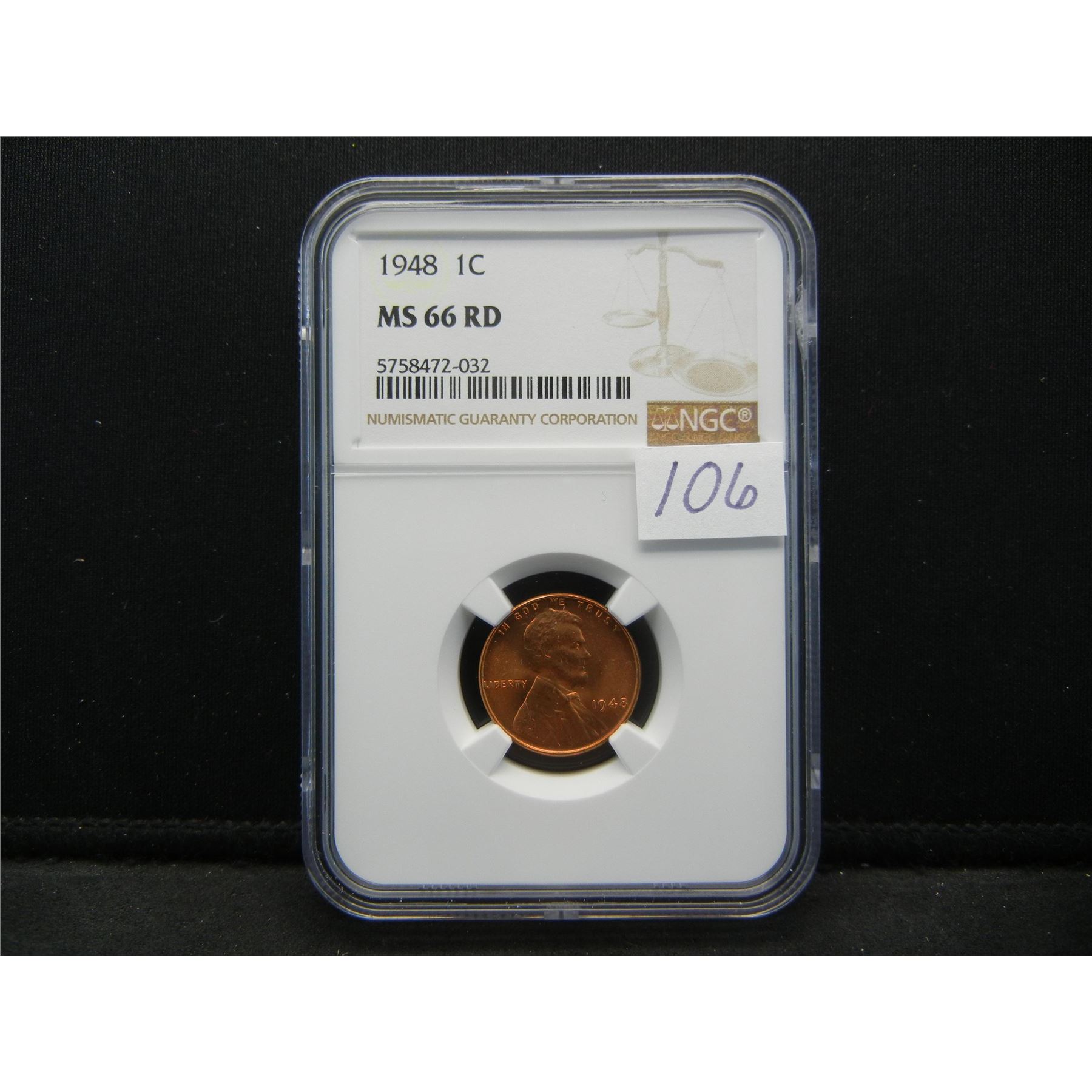 1948 Lincoln Cent NGC MS66 Red Scarce NGC Price Guide $135