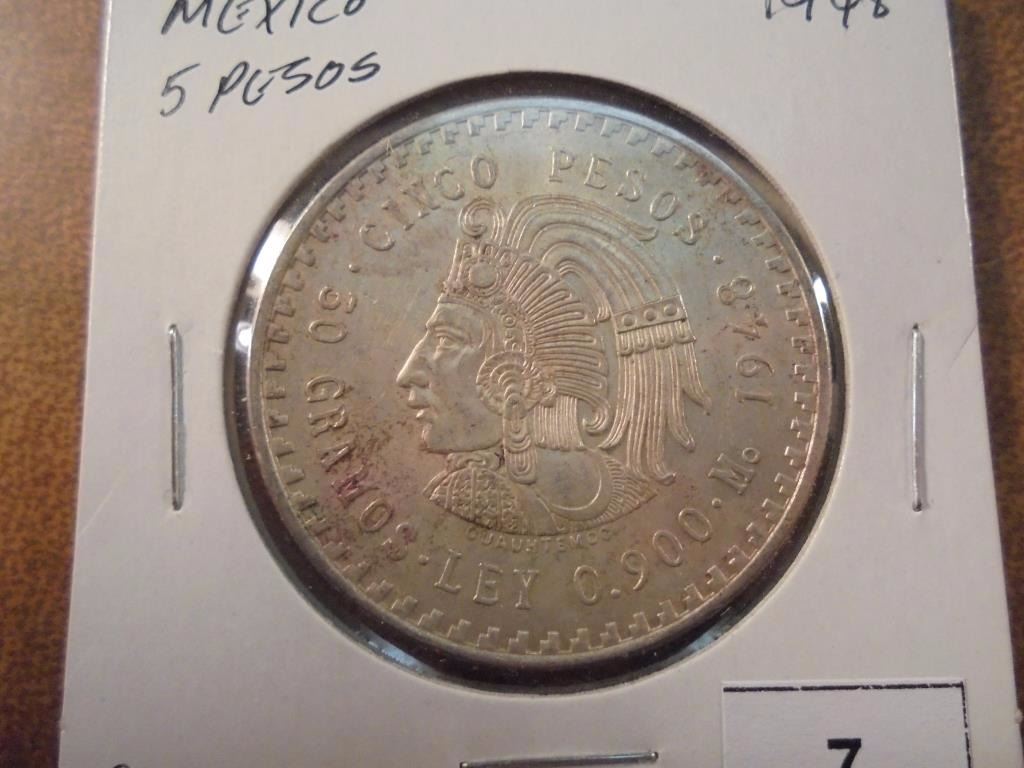 1948 MEXICO SILVER 5 PESO .8680 OZ. ASW