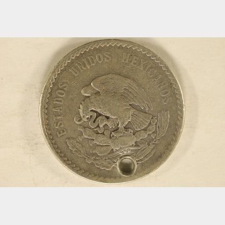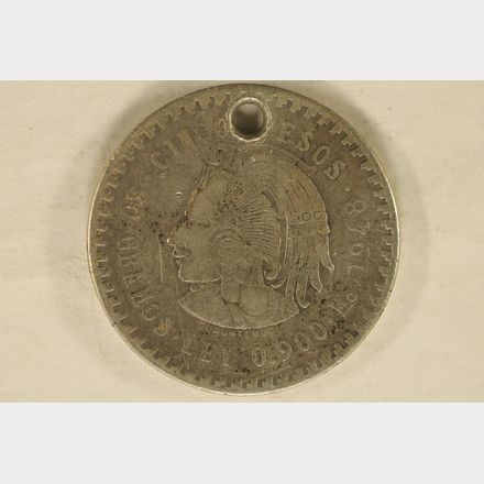 1948 MEXICO SILVER 5 PESO (HOLED) .8681 OZ. ASW