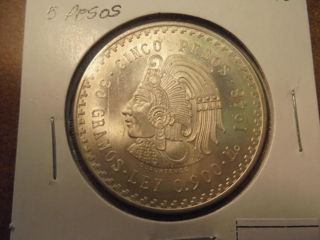 1948 MEXICO SILVER 5 PESOS .8680 OZ. ASW UNC