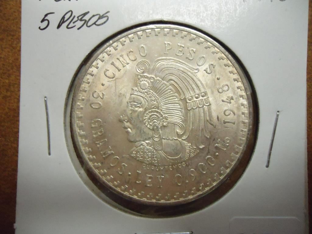 1948 MEXICO SILVER 5 PESOS .8680 OZ. ASW