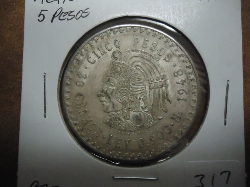 1948 MEXICO SILVER 5 PESOS .8680 OZ. ASW