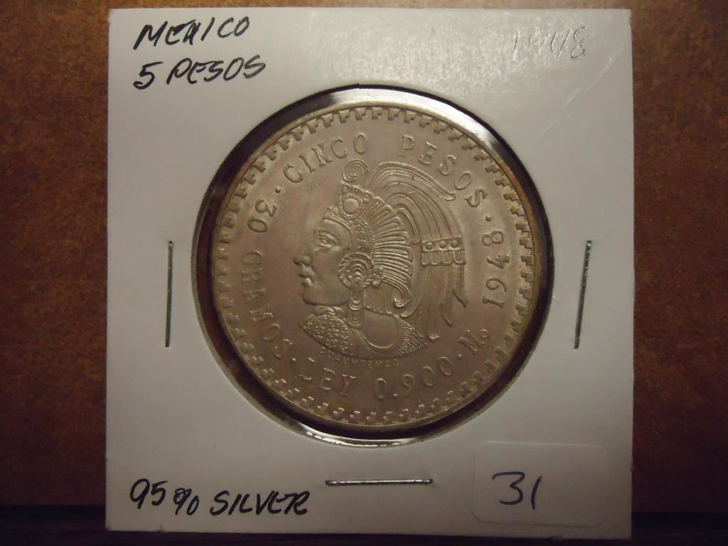 1948 MEXICO SILVER 5 PESOS .8680 OZ. ASW