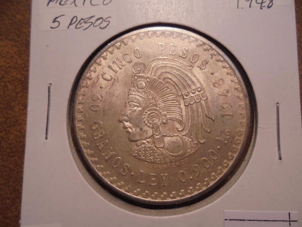 1948 MEXICO SILVER 5 PESOS .8680 OZ. ASW