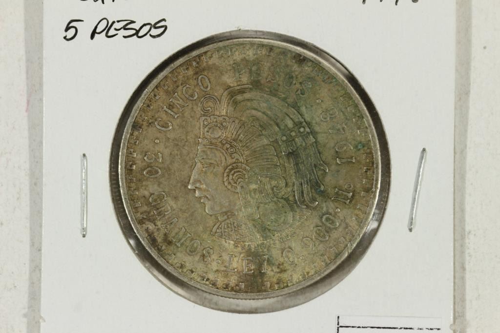 1948 MEXICO SILVER 5 PESOS .8680 OZ. ASW