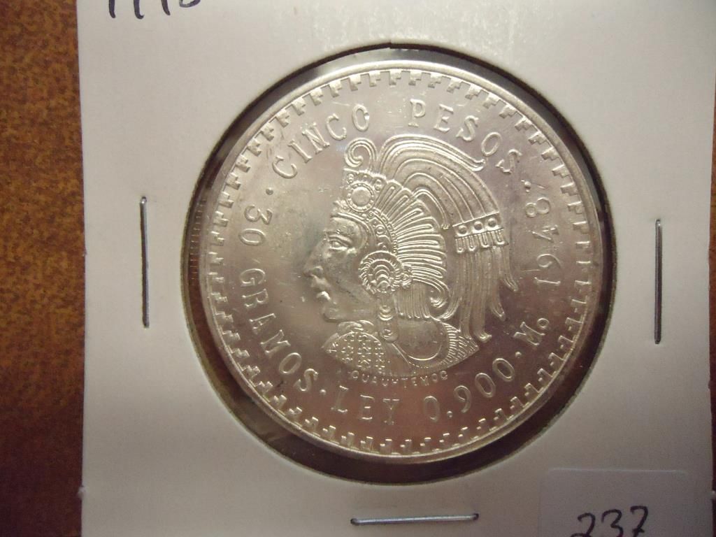 1948 MEXICO SILVER 5 PESOS UNC .8680 OZ. ASW