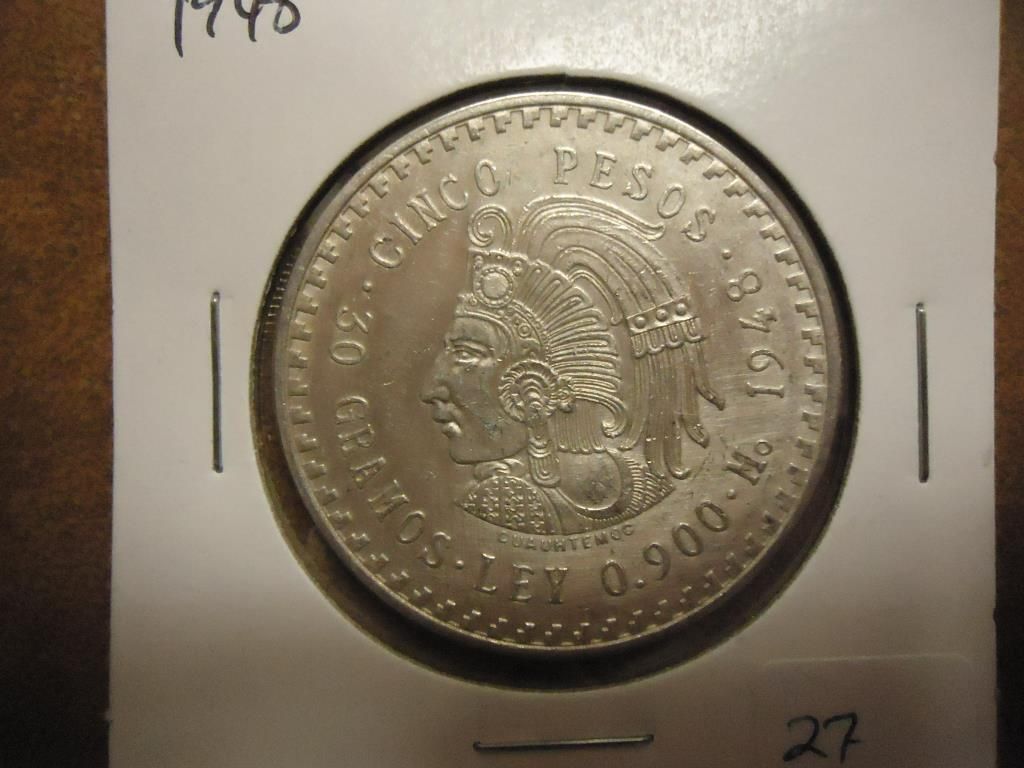 1948 MEXICO SILVER 5 PESOS (UNC) .8680 OZ. ASW