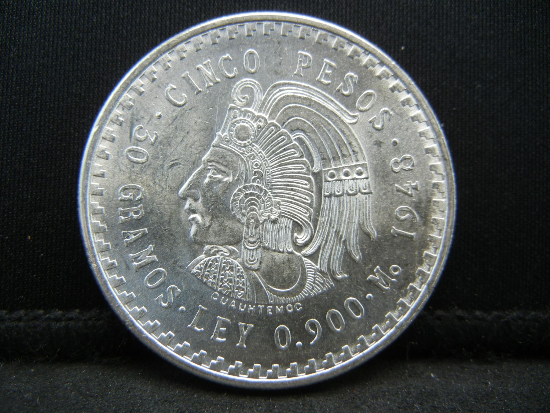 1948 Mexico Silver Cinco Pesos CH BU Flashy