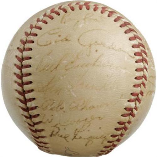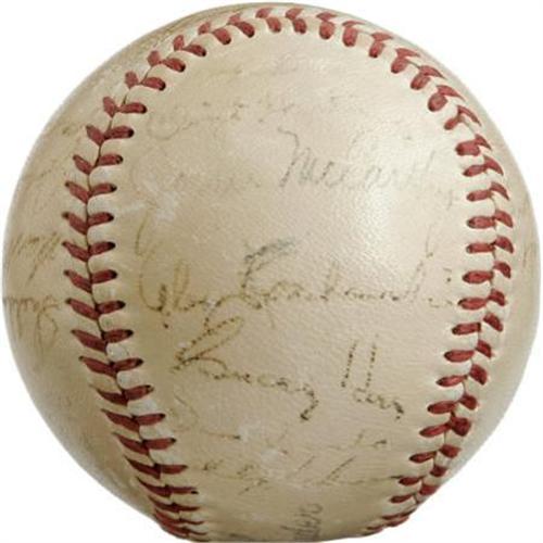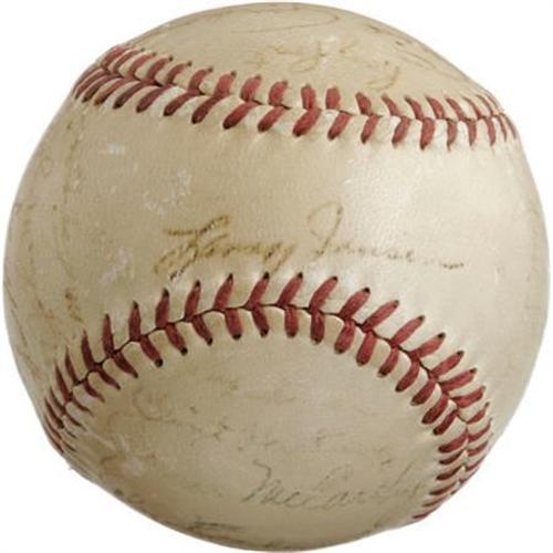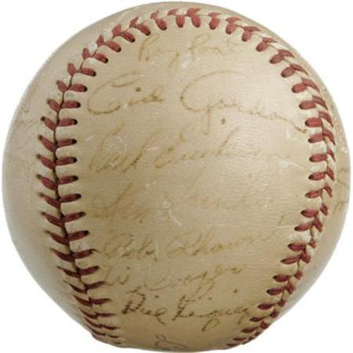 <B>1948 New York Giants Team Signed Baseball.</B></I> Twenty-two members from the 1948 New York Giants grace this vintage orb. Noteworthy inclusions are ace Larry Jansen, HOFer Johnny Mize, Sid Gordon, Walker Cooper, Bill Rigney, and more. <I>LOA from PSA/DNA.</B></I><BR><BR><b>Shipping:</b> Requires 3rd Party Shipping (<a target="_blank" href="http://www.heritageauctions.com/common/shipping.php">view shipping information</a>)