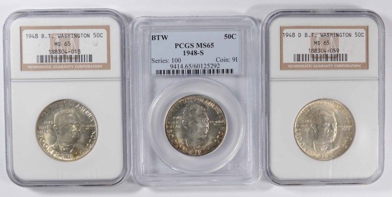 1948 (P,D,S) Booker T Washington Commen Half Dollar NGC/PCGS MS-65