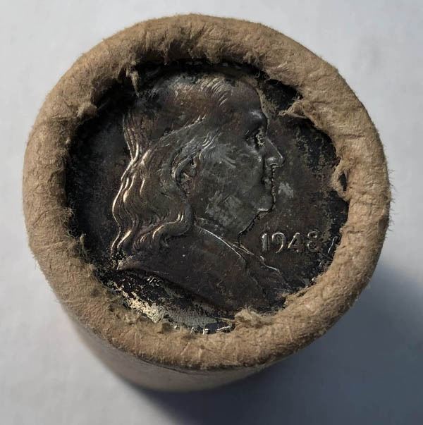 1948-P Franklin Half Dollars, bank-wrapped roll, plus misc. JFK Halves. Original shotgun roll of 1948-P Franklin Halves, plus the following Kennedy Halves:
