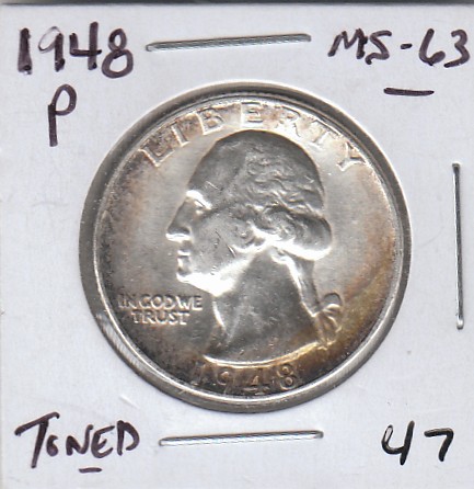 1948 P MS 63 TONED WASHINGTON SILVER QUARTER
