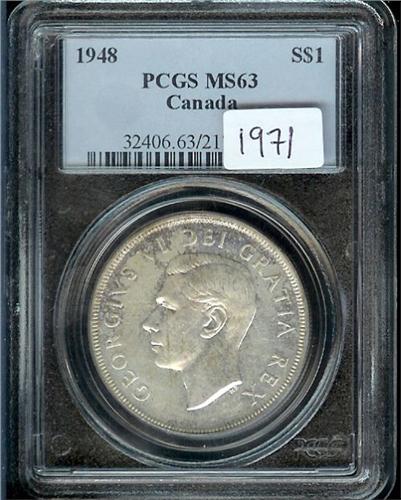 1948 PCGS MS63. Light tone but mostly brilliant and lustrous.