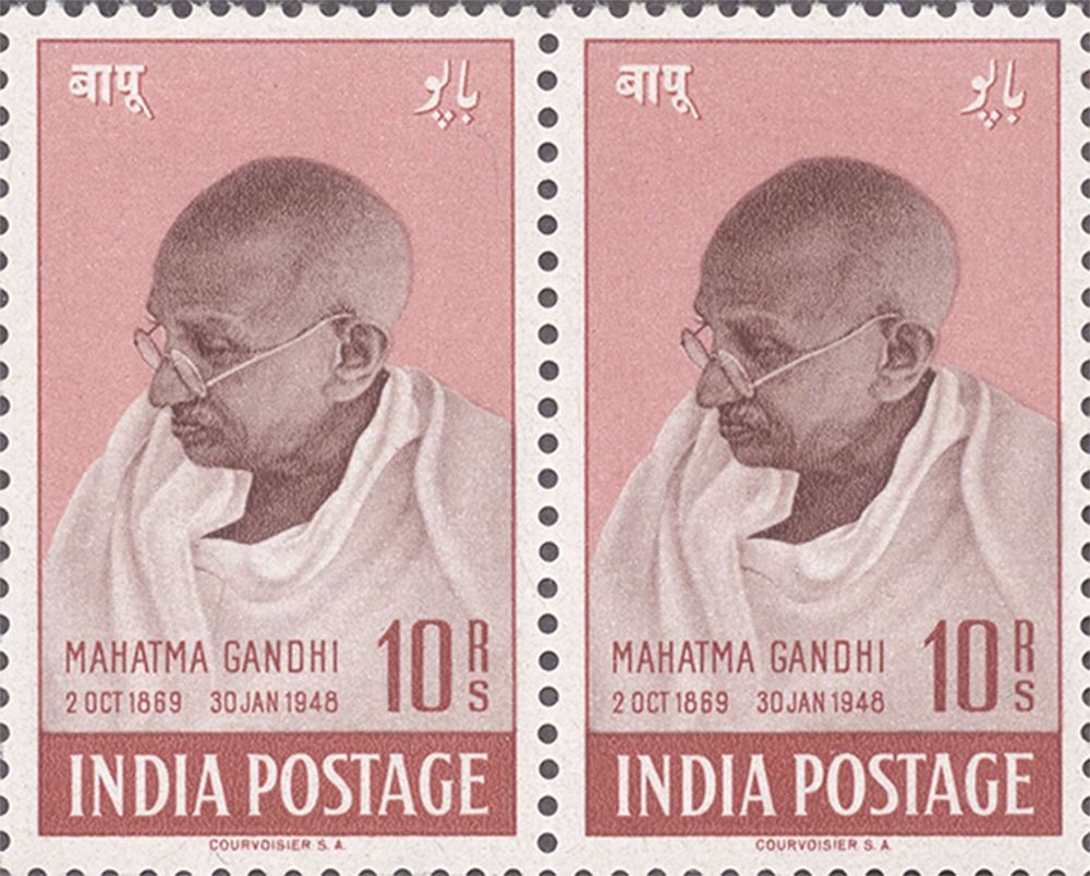 1948, 10 Rupees, Mahatma Gandhi, Pair of 2 Stamps, MNH, White Gum.