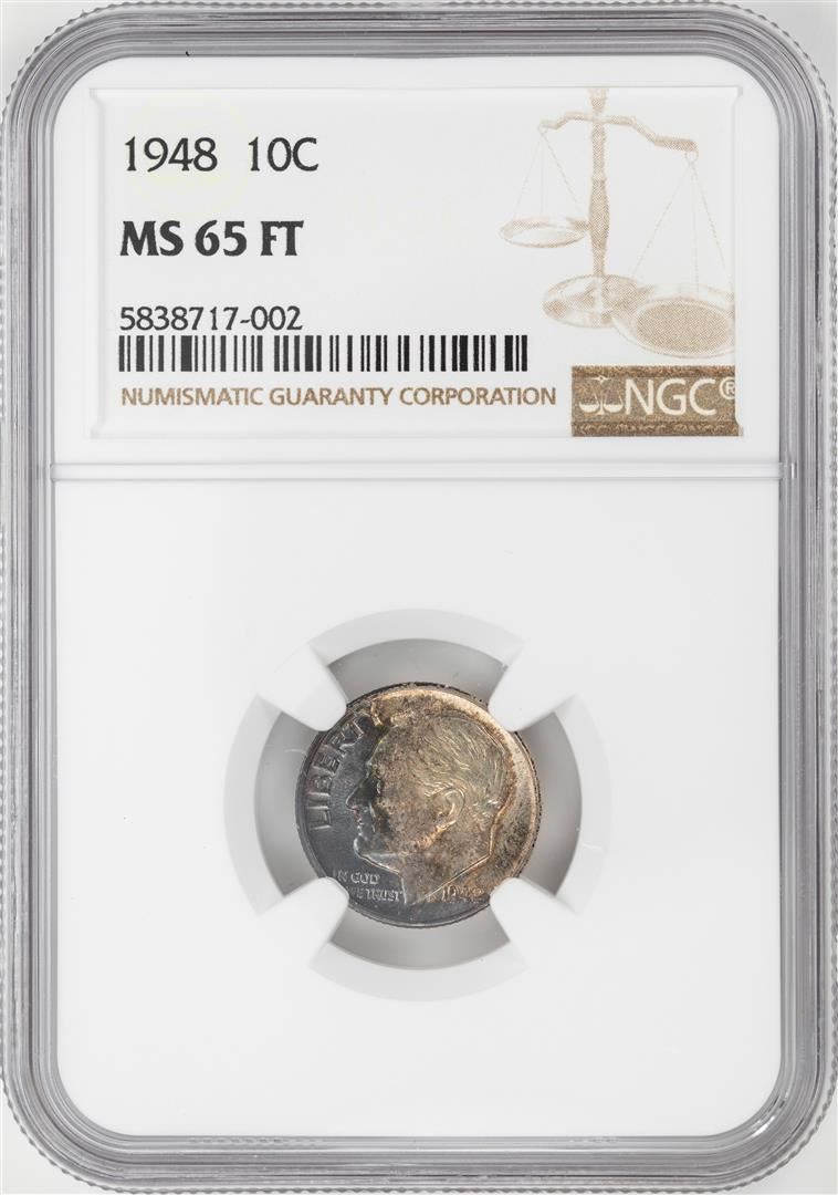 One 1948 Roosevelt Dime Coin NGC MS65FT. NGC Certified.