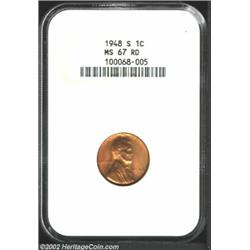 1948-S 1C MS67 Red NGC. Lustrous with exceptionally smooth, problem-free surfaces.From the Francis S