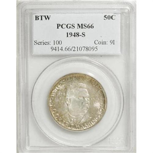 <B>1948-S 50C Booker T. Washington MS66 PCGS.</B></I> PCGS Population (202/3). NGC Census: (268/38). Mintage: 8,005. Numismedia Wsl. Price for NGC/PCGS coin in MS66: $240. (#9414)<BR><BR><b>Shipping:</b> Coins & Currency (<a target="_blank" href="http://www.heritageauctions.com/common/shipping.php">view shipping information</a>)