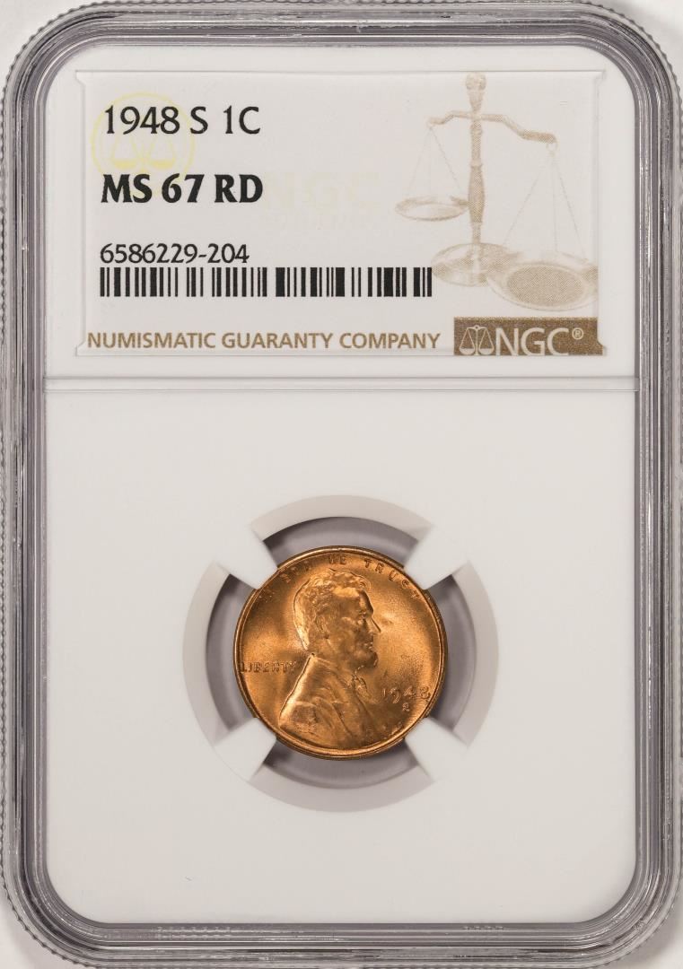 One 1948-S Lincoln Wheat Cent Coin NGC MS67RD. NGC Certified.