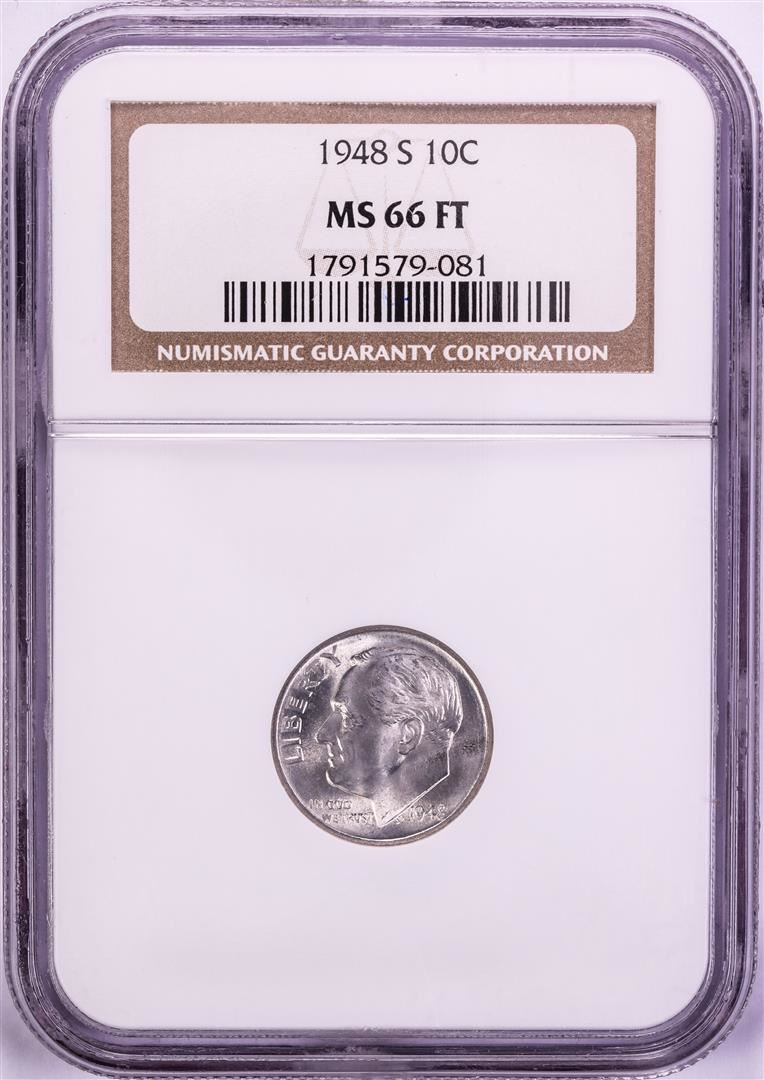 One 1948-S Roosevelt Dime Coin NGC MS66FT. NGC Certified.