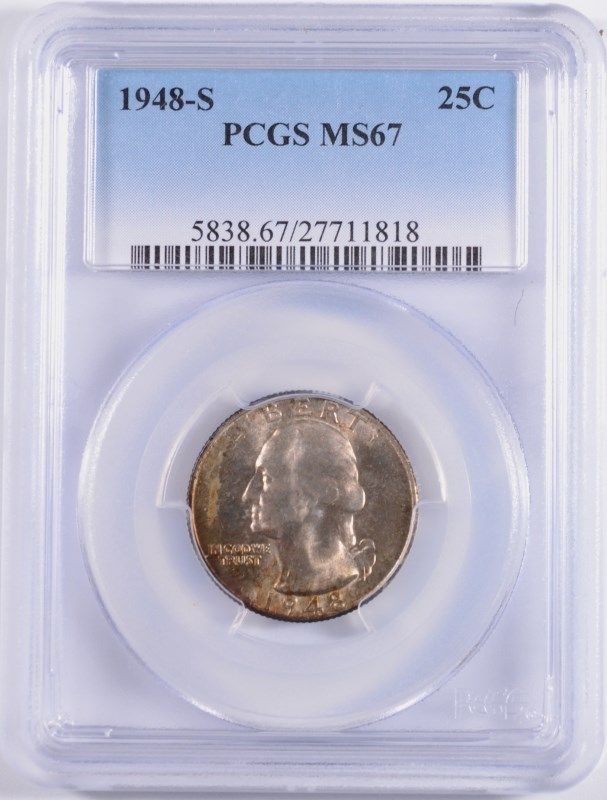 1948-S WASHINGTON QUARTER, PCGS MS-67 BEAUTIFUL TONING!
