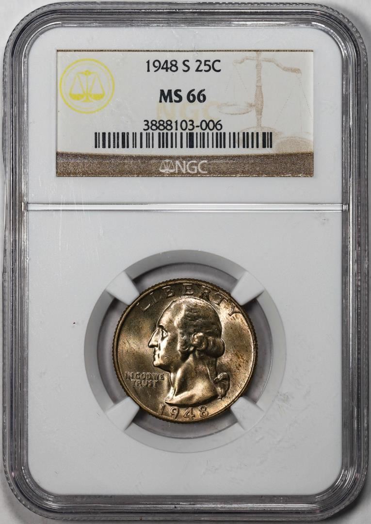 One 1948-S Washington Quarter Coin NGC MS66 Amazing Toning. NGC Certified.