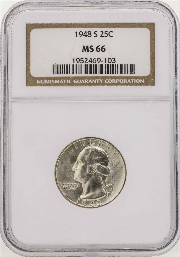 One 1948-S Washington Silver Quarter Coin NGC MS66. NGC Certified.