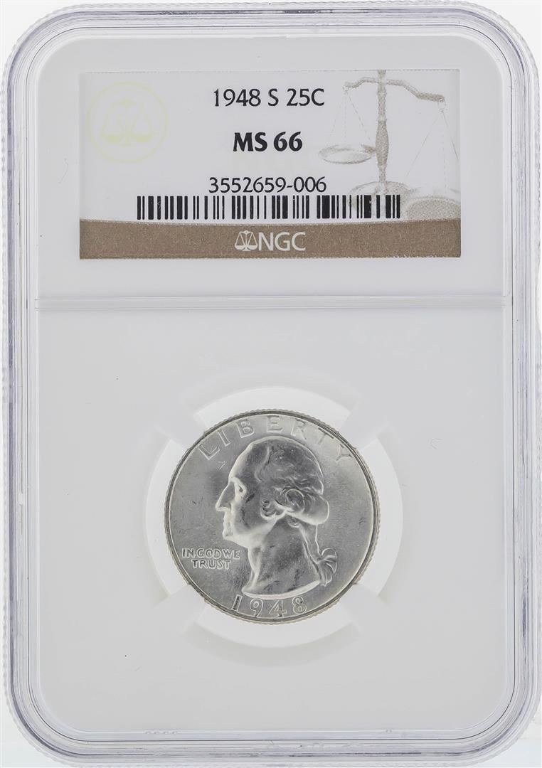 One 1948-S Washington Silver Quarter NGC MS66. NGC Certified.