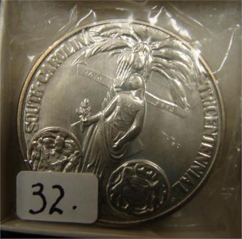 1948 SOUTH CAROLINA TRICENTENNIAL SILVER ROUND. Unc.