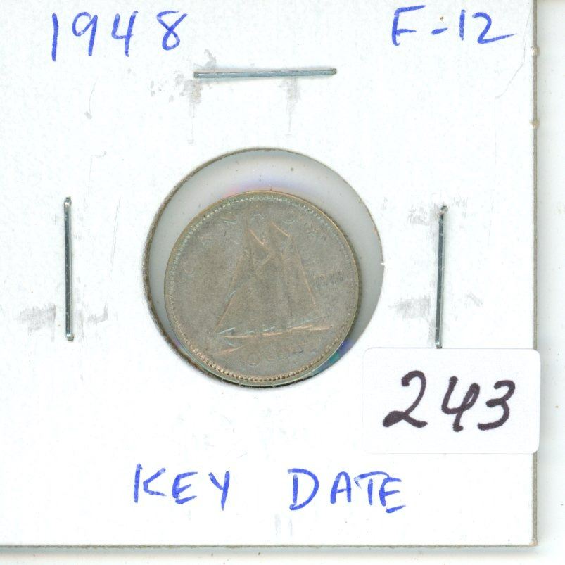 1948 Silver 10 Cents. Key Date. F-12.