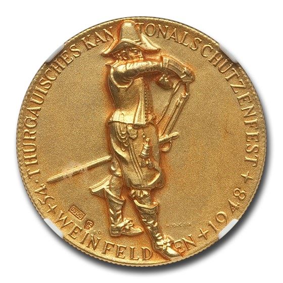 One piece 1948 Switzerland Gold Shooting Medal MS-67 NGC