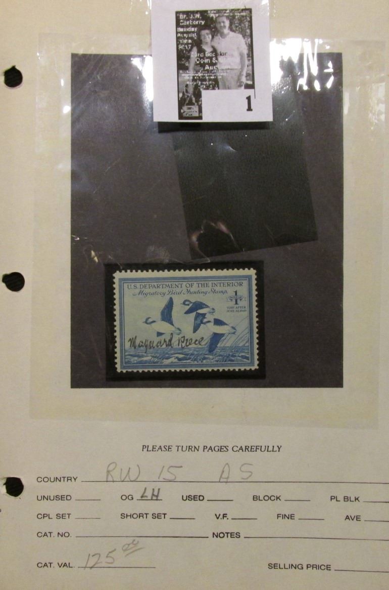 1948 U.S. Department of the Interior Migratory Bird Hunting Stamp, RW#15, Light hinge, Signed by the