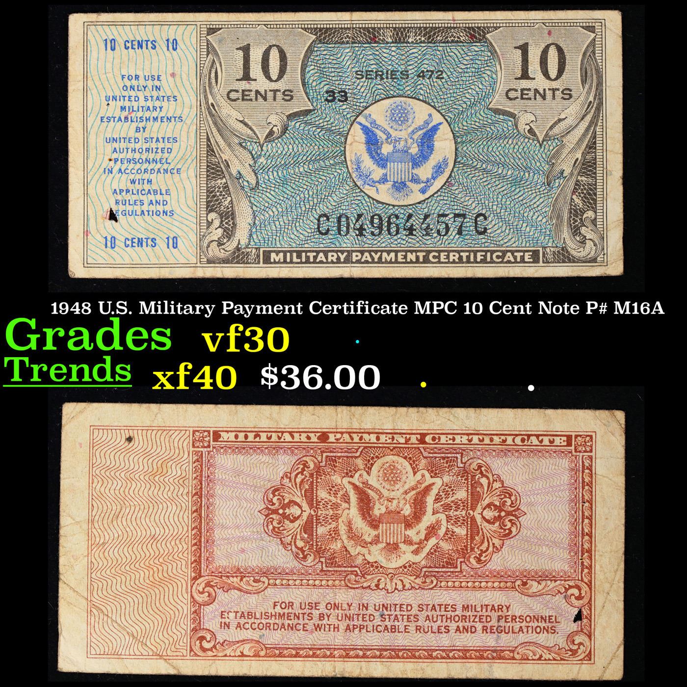 1948 U.S. Military Payment Certificate MPC 10 Cent Note P# M16A Grades vf++. Allied Military Currency ("AMC") was a form of currency issued by the Allied powers during World War II, to be issued to troops entering liberated or newly occupied countries. Historically, soldiers serving overseas had been paid in local currency rather than in their "home" currency. Most cash drawn by soldiers would go directly into the local economy, and in a damaged economy the effects of a hard currency such as the dollar circulating freely alongside weaker local currencies could be severely problematic, risking severe inflation.