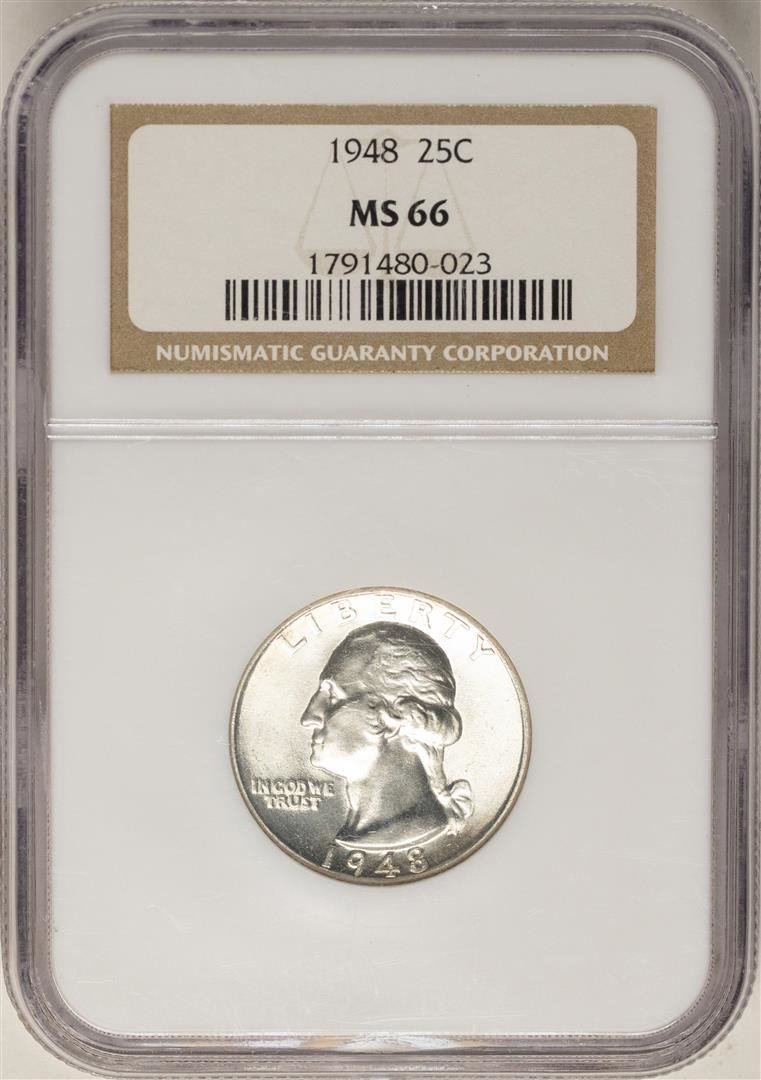 One 1948 Washington Quarter Coin NGC MS66. NGC Certified.